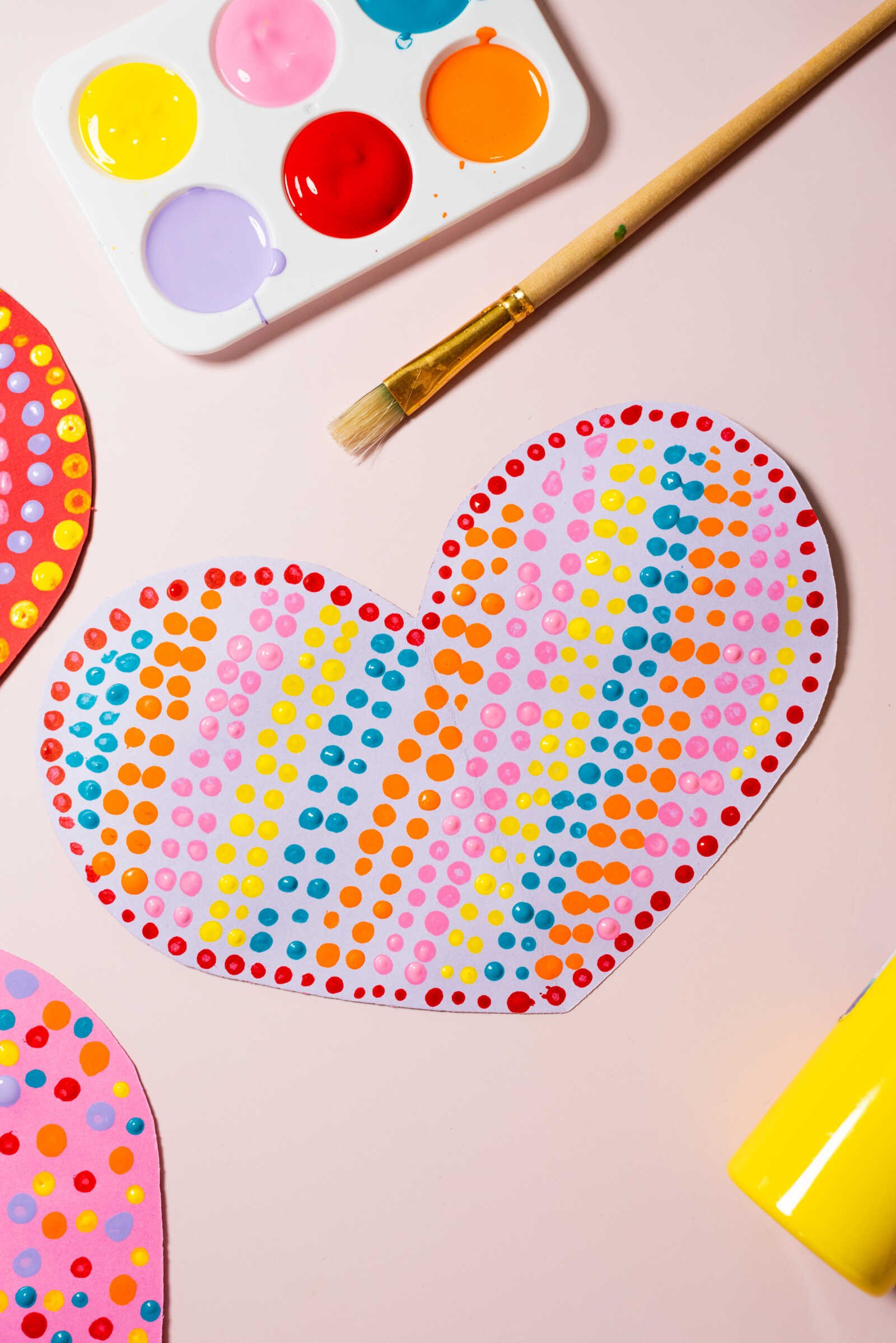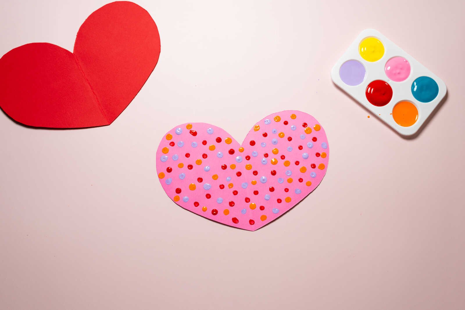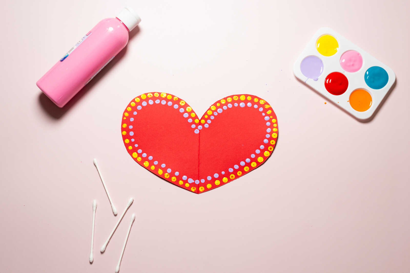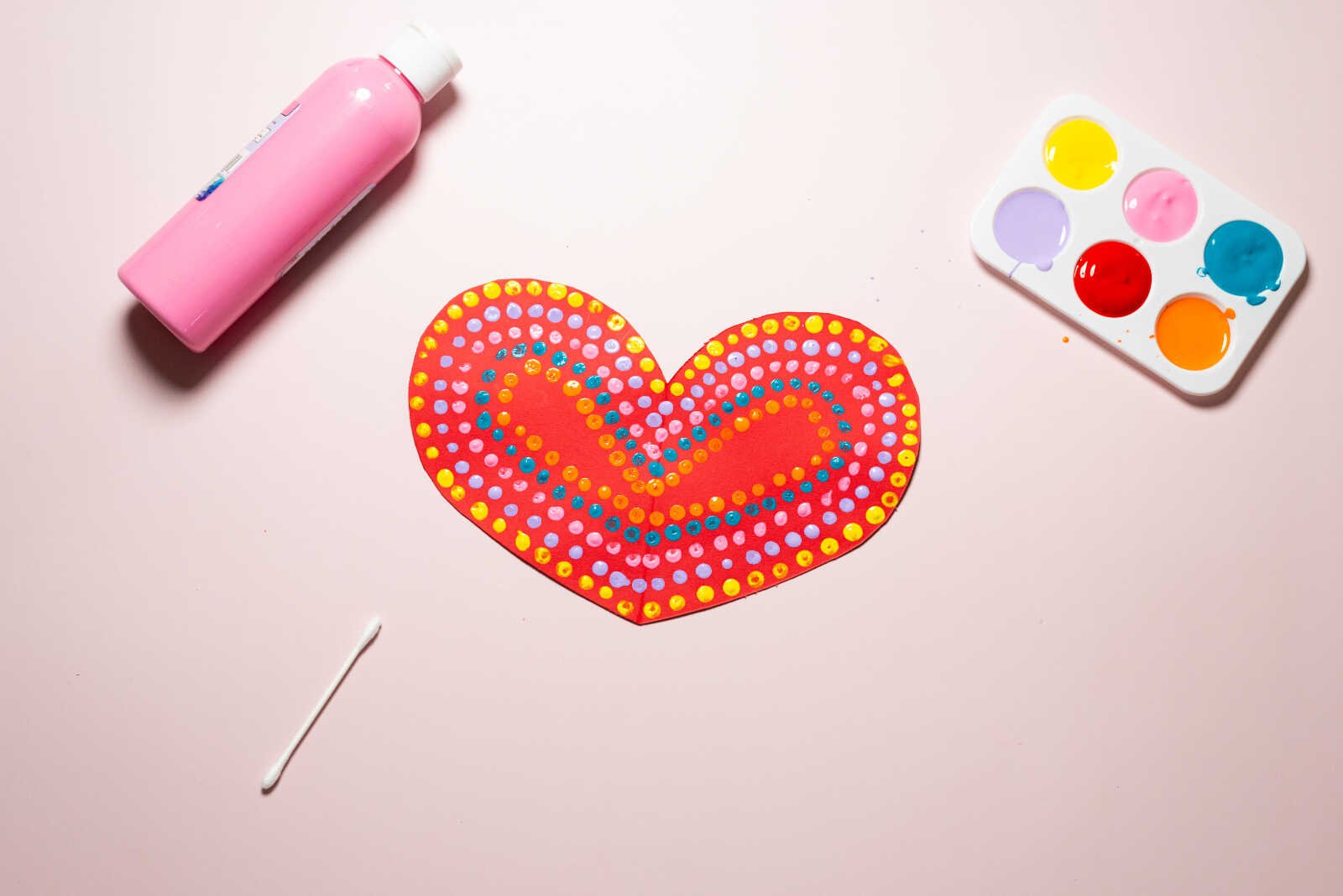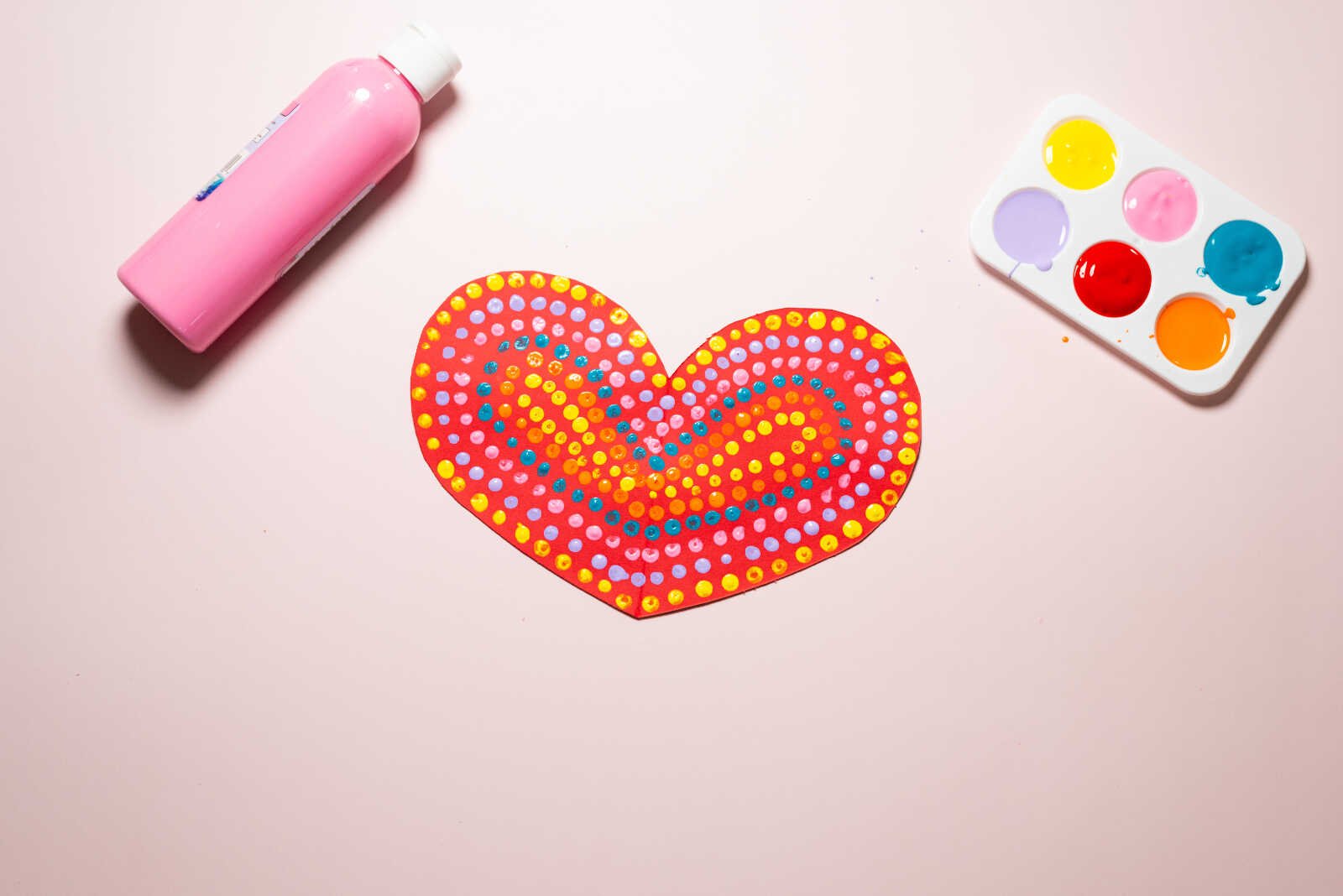 Let go of structure and embrace creativity! Start near the heart and randomly dab dots all over the page using different colors.