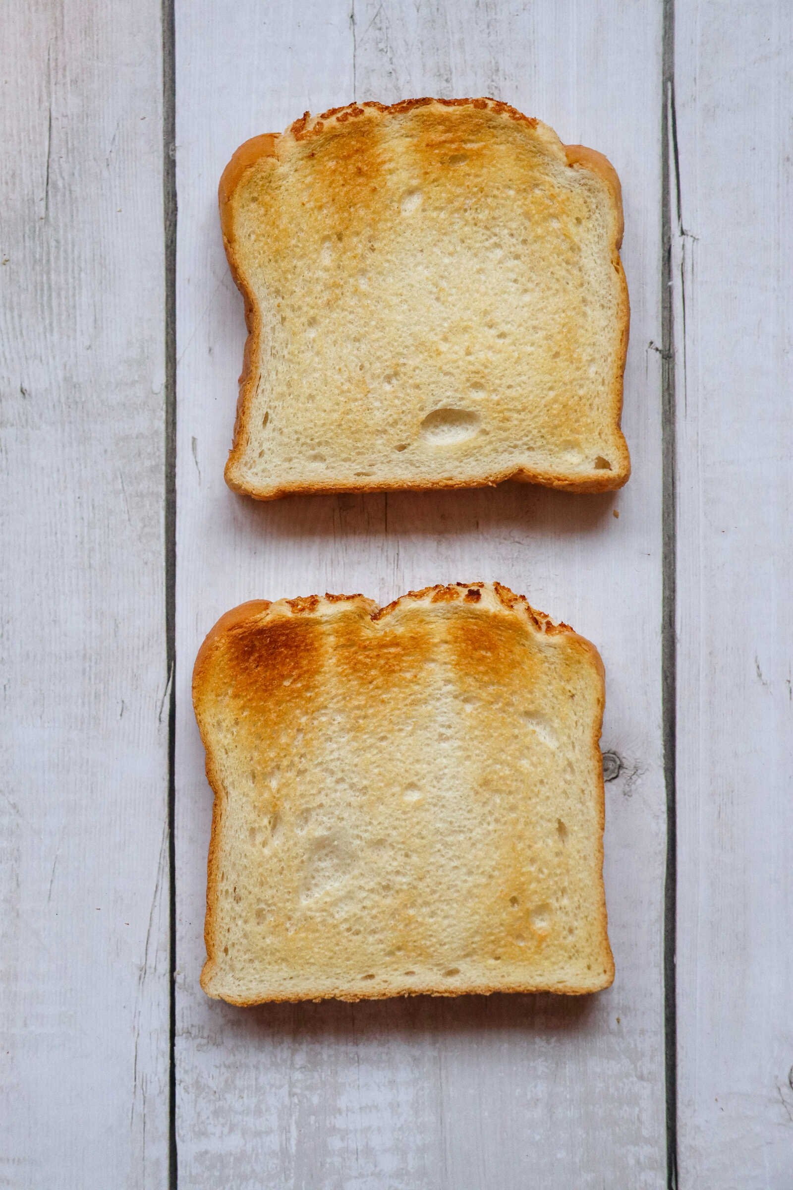 Heat a skillet over medium heat. Place your slices of bread into the skillet and toast each side for about 2–3 minutes until golden brown and slightly crisp.